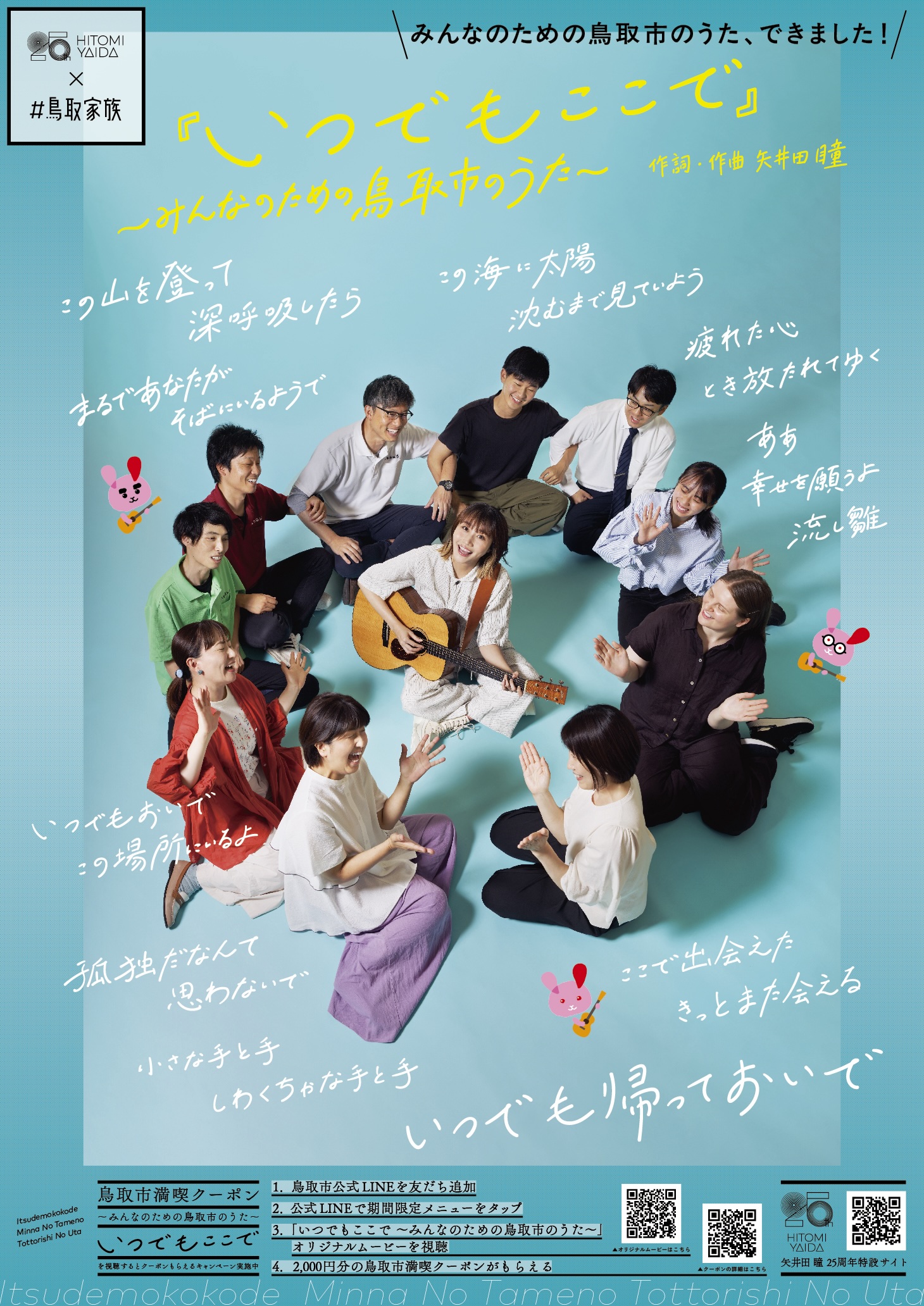 それらの言葉や鳥取市民の想いをもとに、シンガーソングライターの矢井田 瞳さんが作詞・作曲。